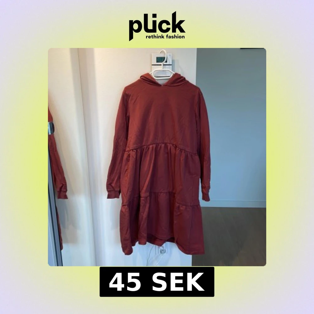 Rostbrun/rosa klänning med huva från The New. Storlek 13-14 år (typ 164). 85% bomull, jätteskön! 💗