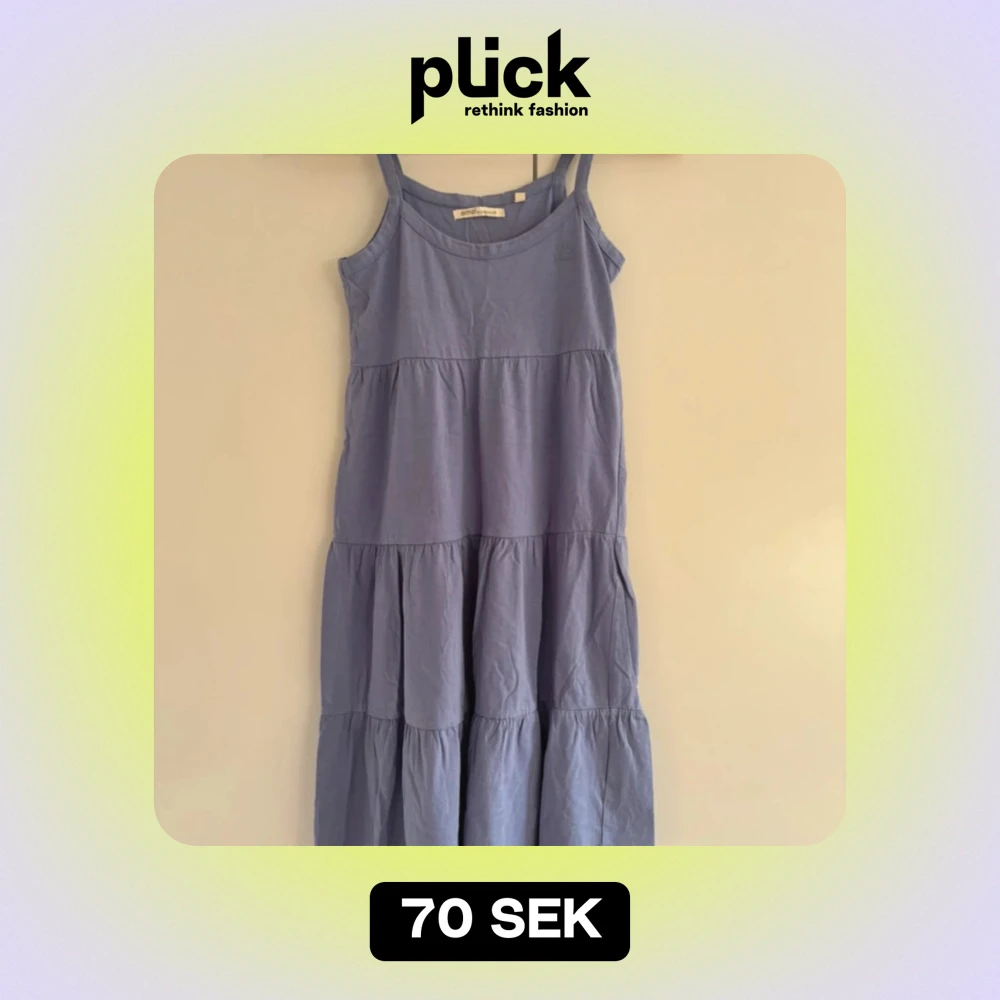 Säljer en söt ljusblå klänning från Emoi i 100% bomull. Perfekt för sommardagar med sin luftiga design och bekväma passform. Klänningen är ärmlös och har en avslappnad stil med flera volanger. Perfekt för både vardag och festliga tillfällen! Köparen betalar frakt.