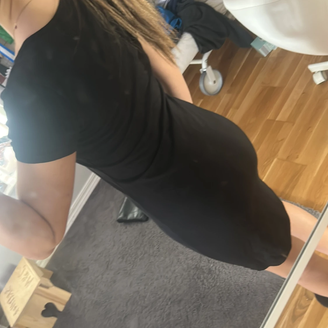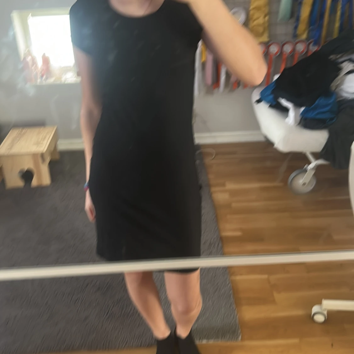 Snygg svart klänning från RYMLS med en tight passform. Klänningen har korta ärmar och är perfekt för en stilren look. Den är tillverkad i ett mjukt och bekvämt material som formar sig fint efter kroppen.