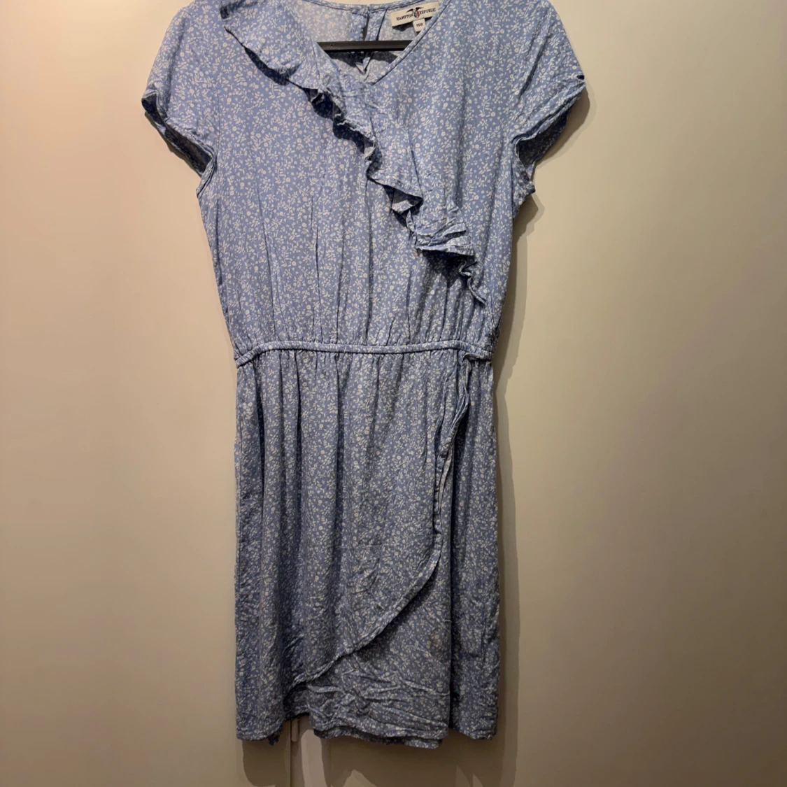 Supersöt ljusblå kortklänning från Hampton Republic med vitt blommönster. Omlottmodell med volangdetalj längs v-ringningen och knyt i midjan. Korta ärmar och luftig passform, perfekt för varma dagar.Skriv för mer bilder och frågor så svarar jag så fort jag kan pris går altid att diskuteras💕💕
