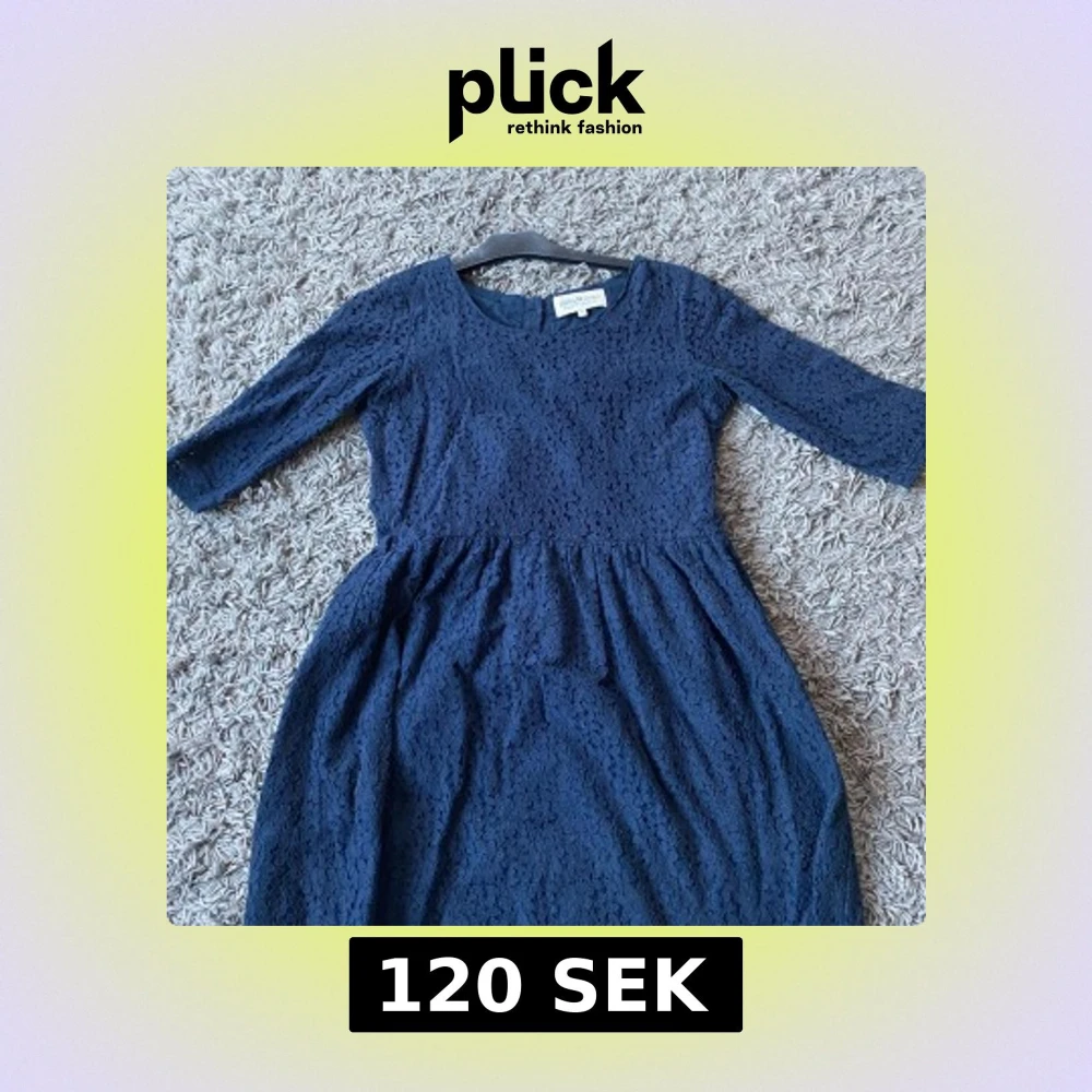 Säljer en marinblå klänning från Hampton Republic i vacker blommig spets. Klänningen har trekvartsärm, rund halsringning och knappar i ryggen. ❤️❤️