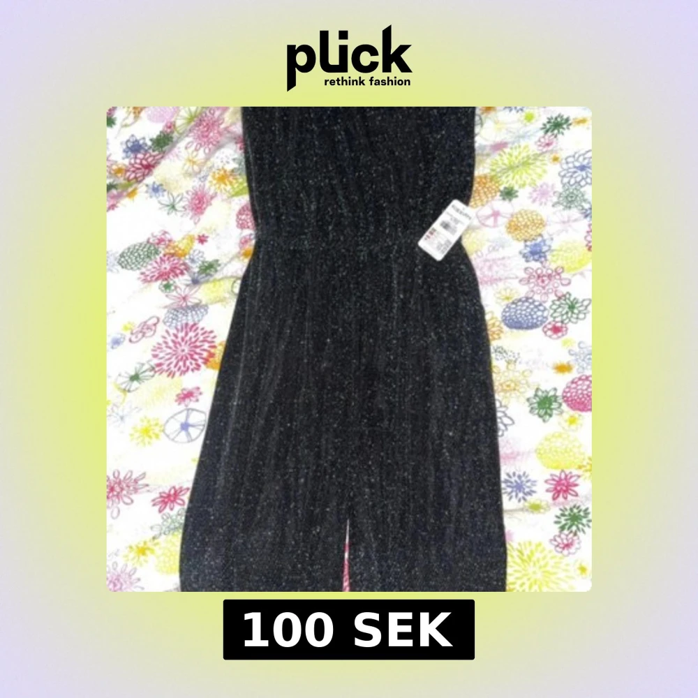 Snygg svart långklänning med glittriga detaljer som ger en festlig vibe. Klänningen har en rak siluett och resår i midjan för skön passform. Materialet är mjukt och skimrande, perfekt för dig som gillar att sticka ut. Slits framtill för extra edge.