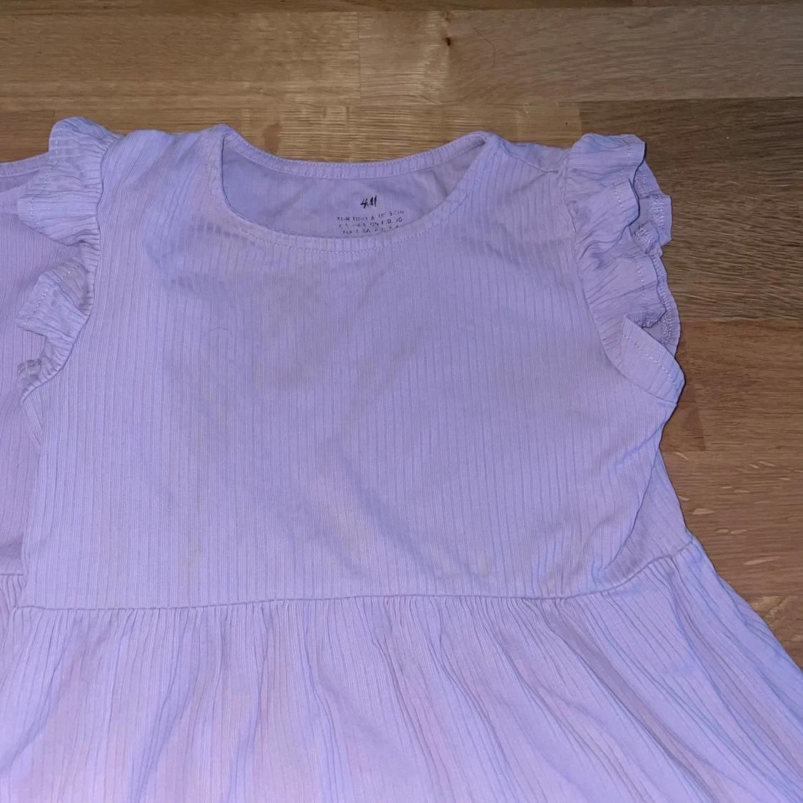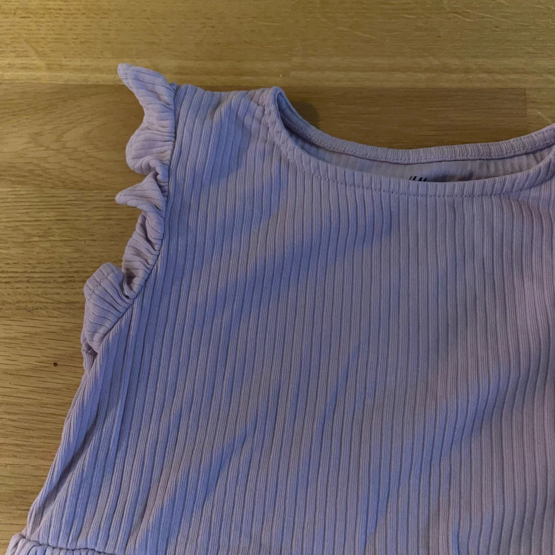 Supersöta ljuslila klänningar från H&M med smala vertikala ränder och volangdetaljer på axlarna. Klänningarna är ärmlösa, har rund halsringning och är tillverkad i mjuk bomull. Perfekt för sommarens varma dagar och har en flowy kjol som ger en skön känsla.