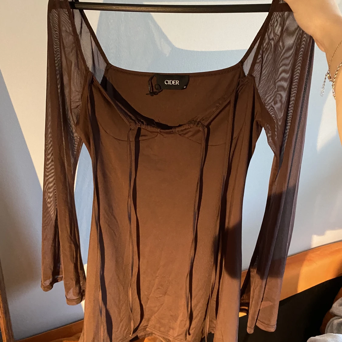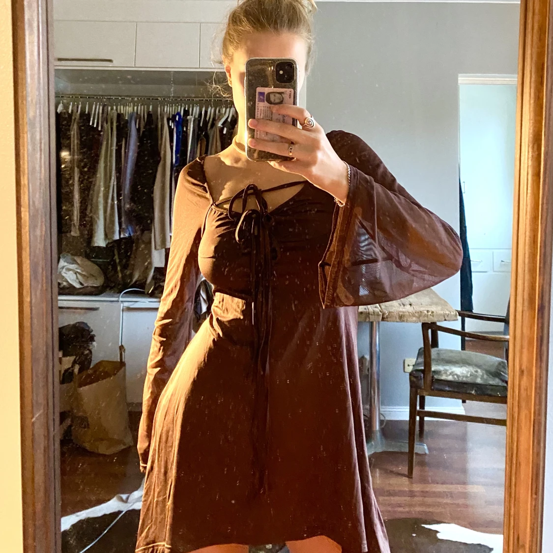 Jättefin kort klänning i brunt. Helt oanvänd.