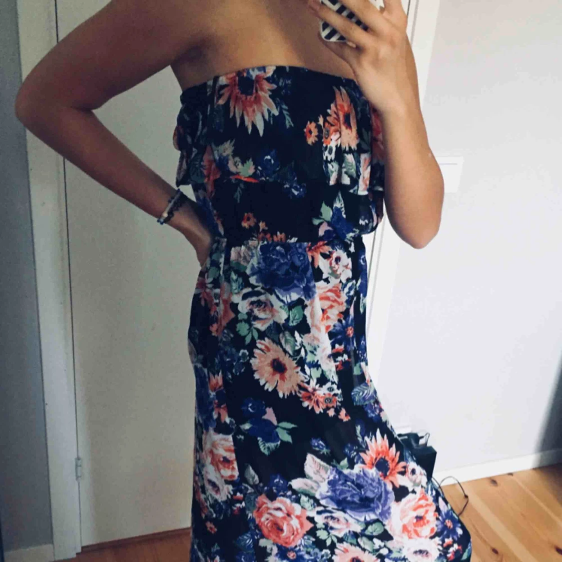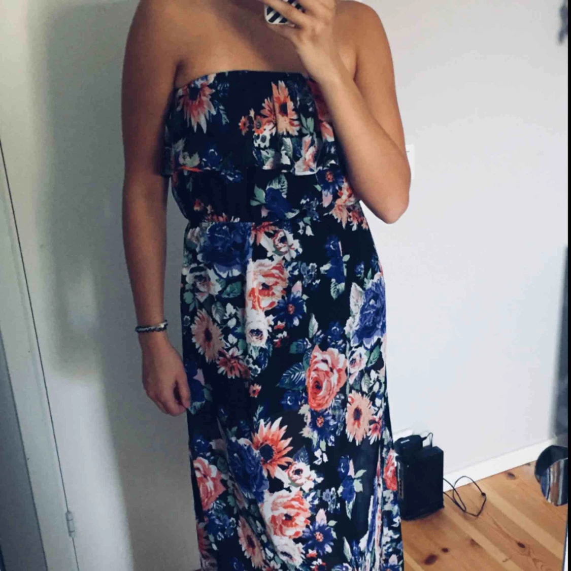 Blommig axelbandslös maxiklänning 🌟🌟 Köparen står för frakt