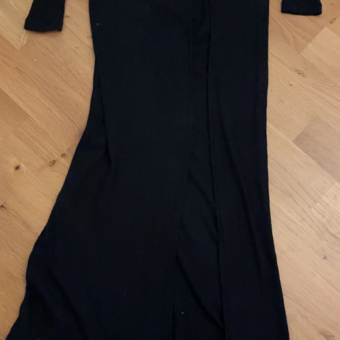 Klänningen har ett stort slit men fick ingen bra bild eftersom solen inte är framme.