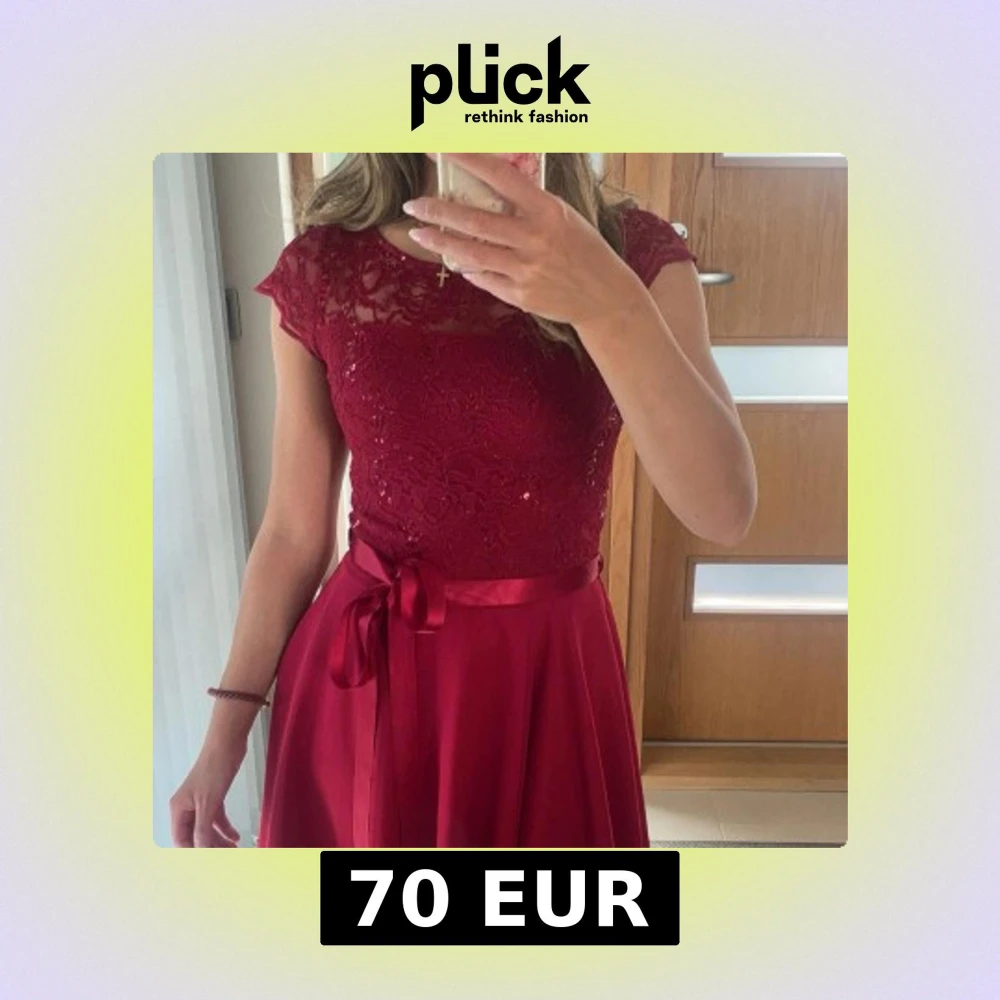 Säljer en vinröd kortklänning med spets upptill och glittriga detaljer🫶🏼använt två gånger💓original pris 160€