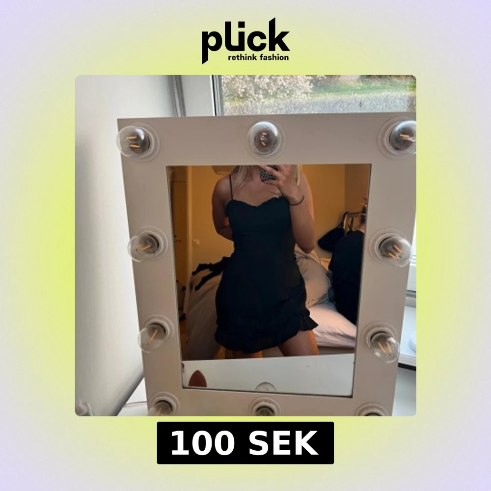 Säljer en sipwr söt svart kort klänning med smala axelband och volangdetalj nertill.