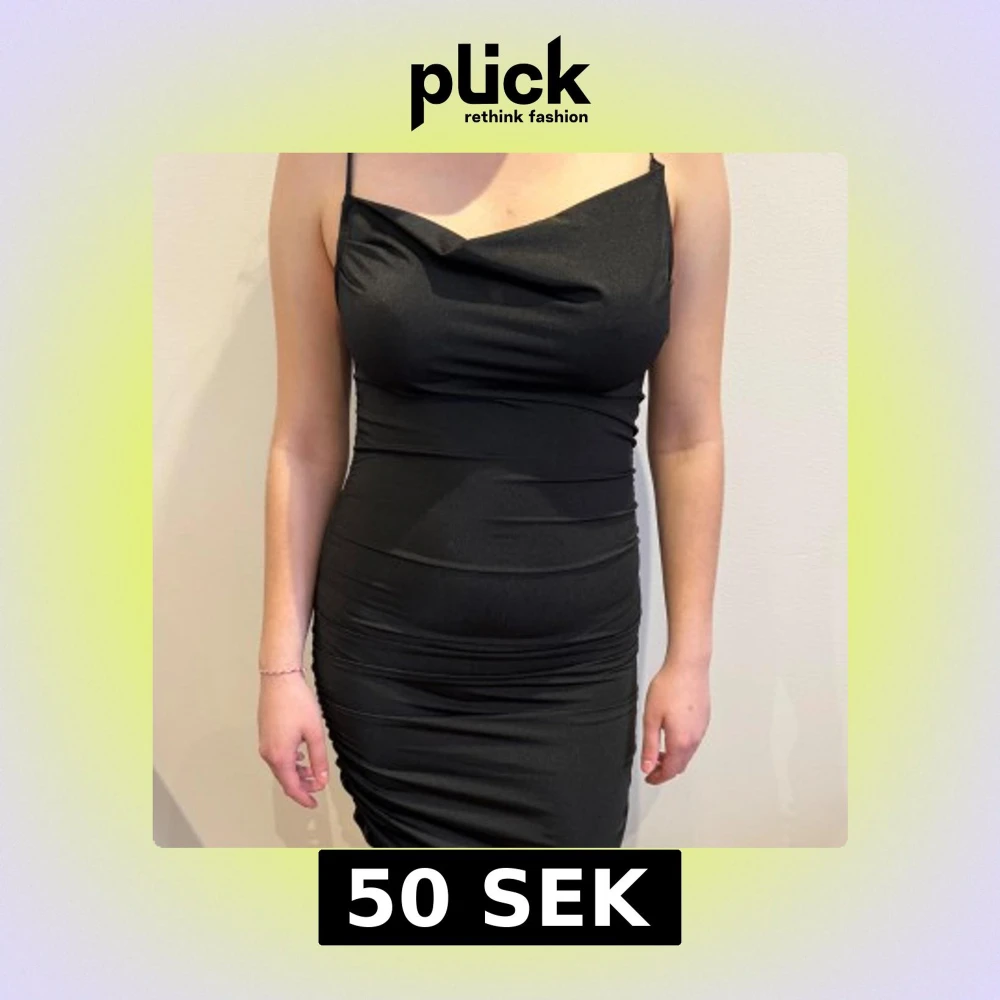 Elegant svart långklänning med smala axelband och draperad design. Perfekt för en stilren look. Stretchig så passar även större storlekar