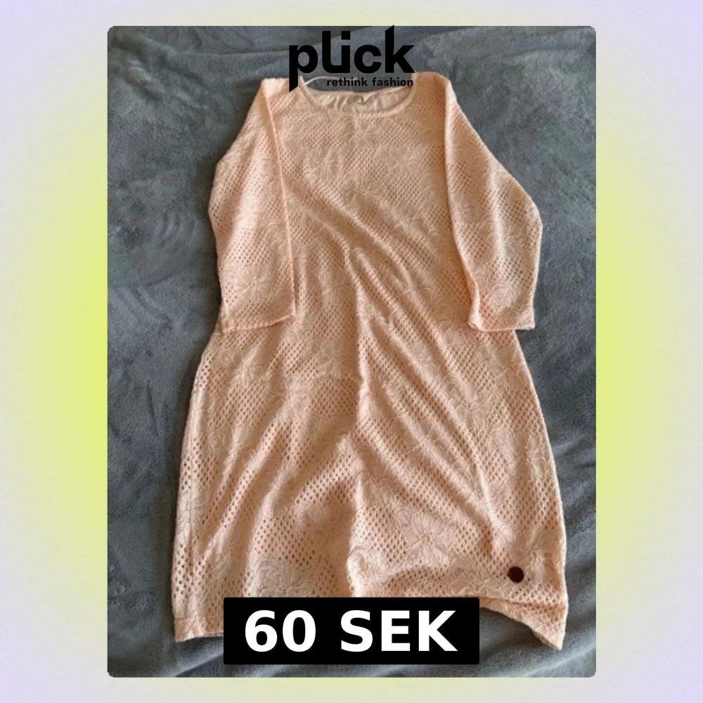Söt ljusrosa klänning med trekvartsärm och vackert spetsmönster. Klänningen har rund halsringning och är fodrad undertill för extra komfort. Perfekt för dig som gillar romantisk och feminin stil.