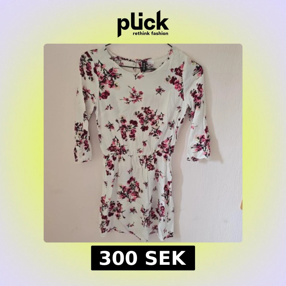 Supersöt vit kortklänning med rosa och vinröda blommor från H&M Divided. Klänningen har trekvartsärm, markerad midja och knappdetalj i nacken. Perfekt för vår och sommar när du vill känna dig extra fräsch och feminin.