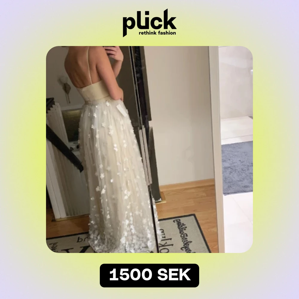 Säljer min balklänning som tyvärr inte kom till användning i färgen champagne med vita blommor i tyll. Storlek 34 Nypris 2500kr 🌸🌸🌸