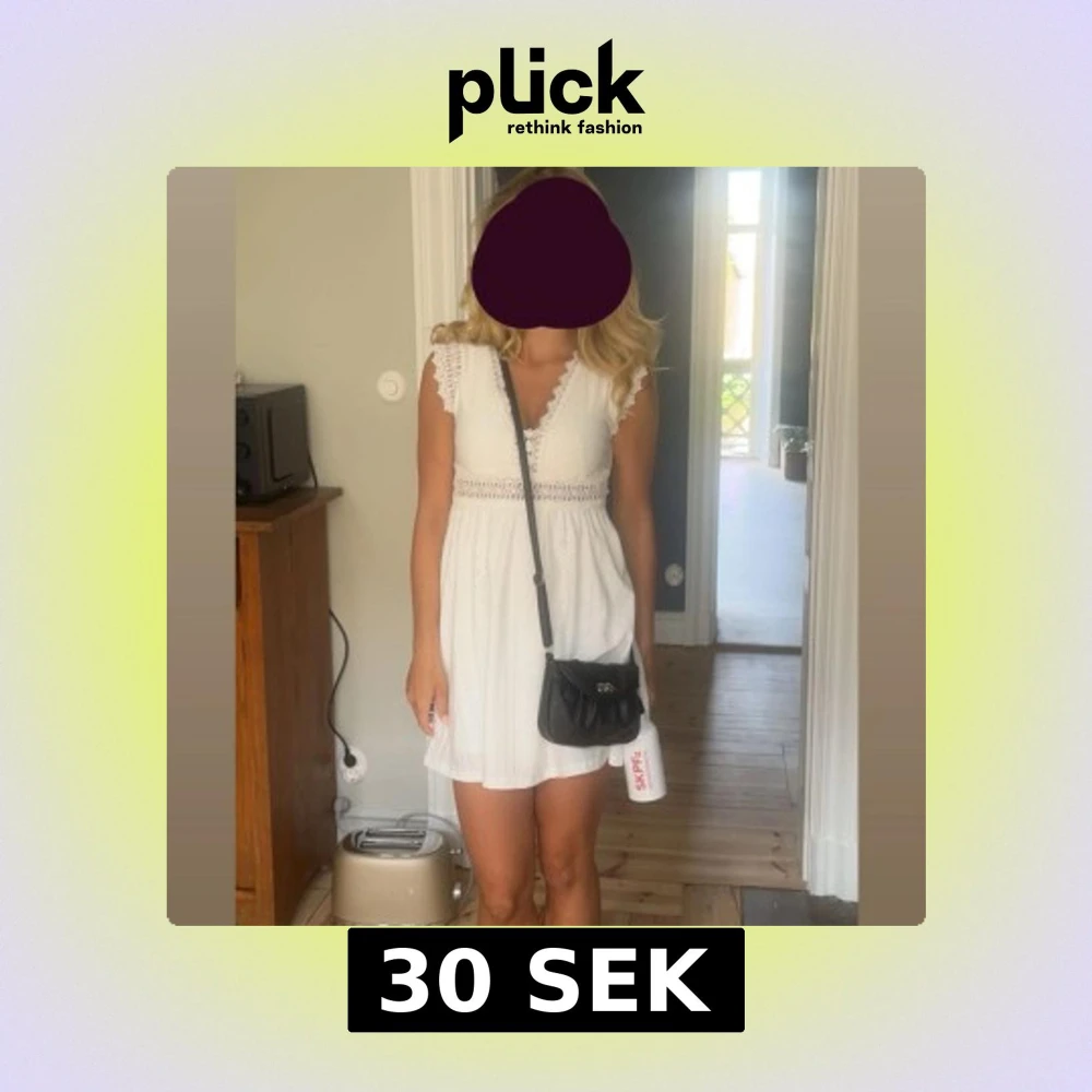 Säljer en söt vit kortklänning med spetsdetaljer och v-ringad hals. Klänningen har broderade detaljer, korta ärmar med spetskant och ett smockat midjeband som ger en fin siluett. Perfekt för sommarens alla tillfällen!