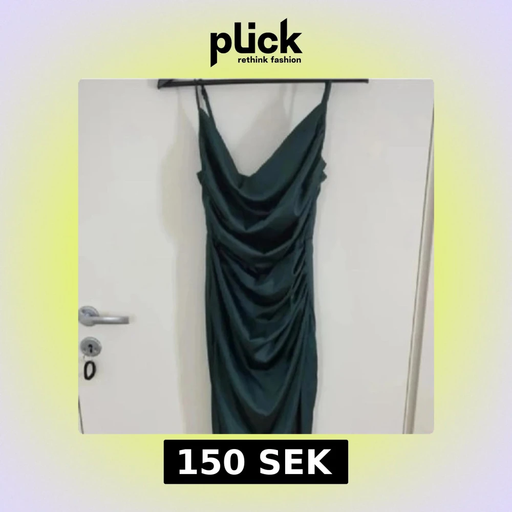 Mörkgrön lång klänning. Slits nertill. Justerbara ärmar. Dragkedja baktill.