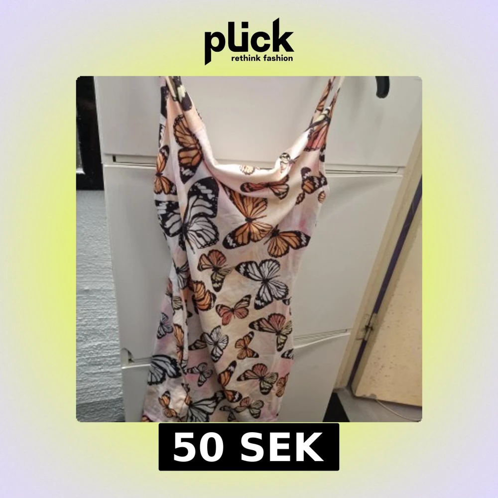 Söt sommarklänning med ett färgglatt fjärilsmönster. Klänningen är ärmlös och har en lös passform, perfekt för varma dagar. Den har en mjuk och bekväm känsla.