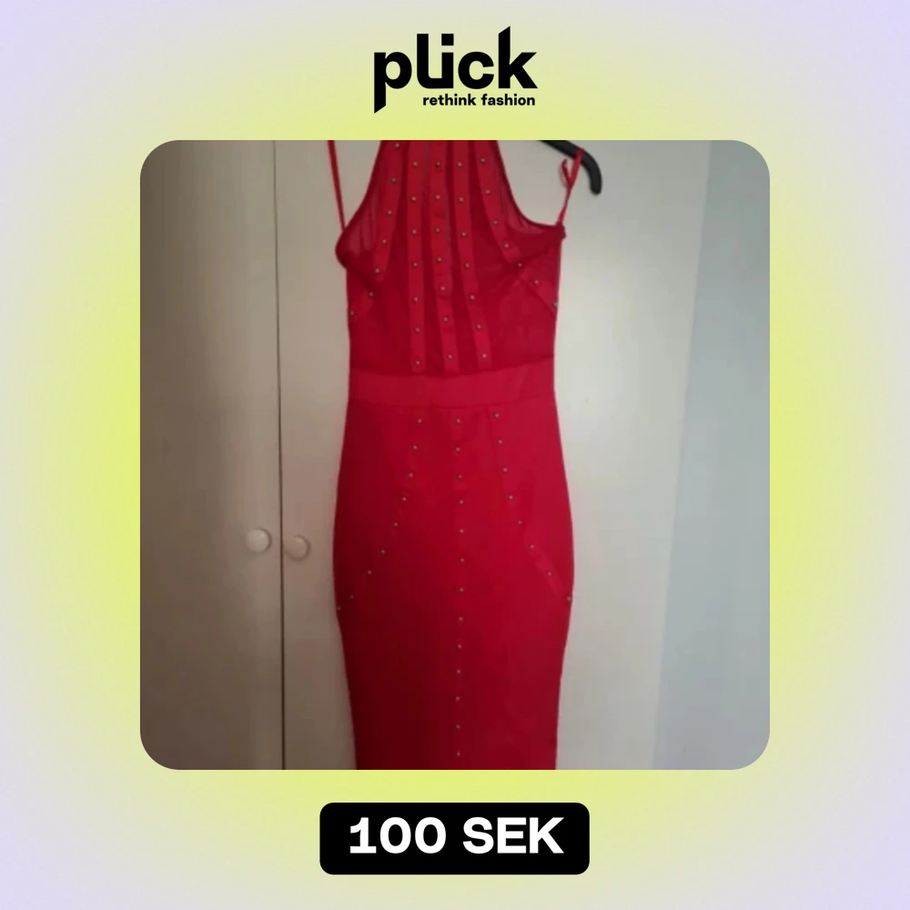 Röd klänning,anvönd en gång. Ena hängaren har gått av därav att den hänger lite snett