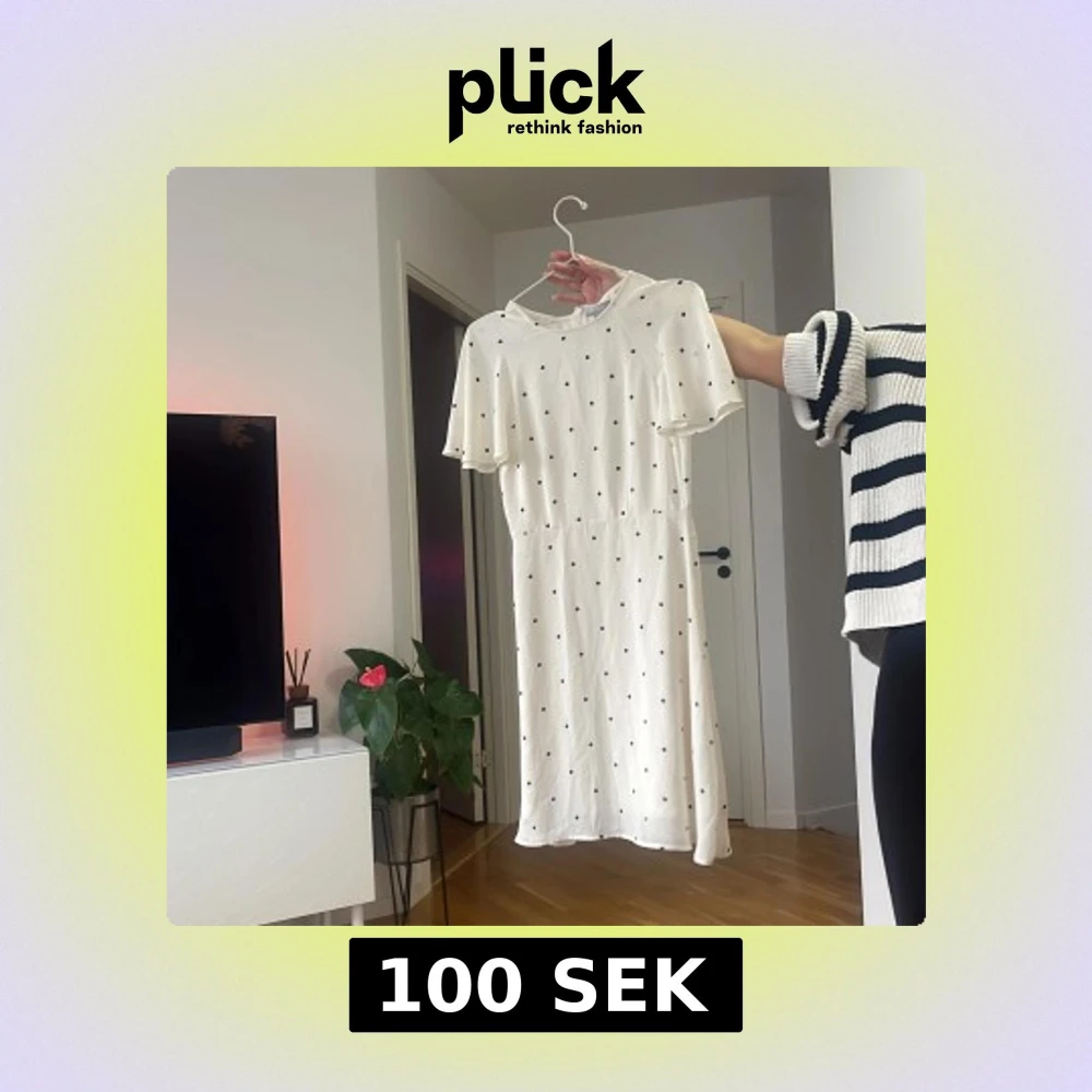 Supersöt vit kortklänning med svarta prickar och korta ärmar. Klänningen har en enkel rund halsringning och en lätt figursydd passform som ger en clean och fräsch look. Perfekt för dig som gillar klassiska mönster med en modern twist.
