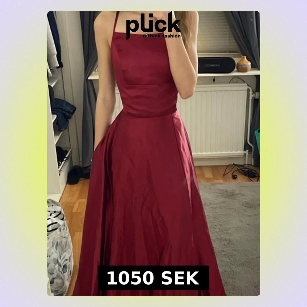 Säljer en vinröd långklänning med snygg snörning i ryggen och öppen rygg. Den är aldrig använd och har prislapp. Två fickor med en slit vid benet. Perfekt för speciella tillfällen och bal💕