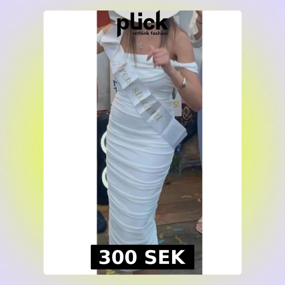 En vit offshoulder klänning som passar bra till sommaren och studenten. Klänningen är i mycket bra skick och är endast använd en gång.