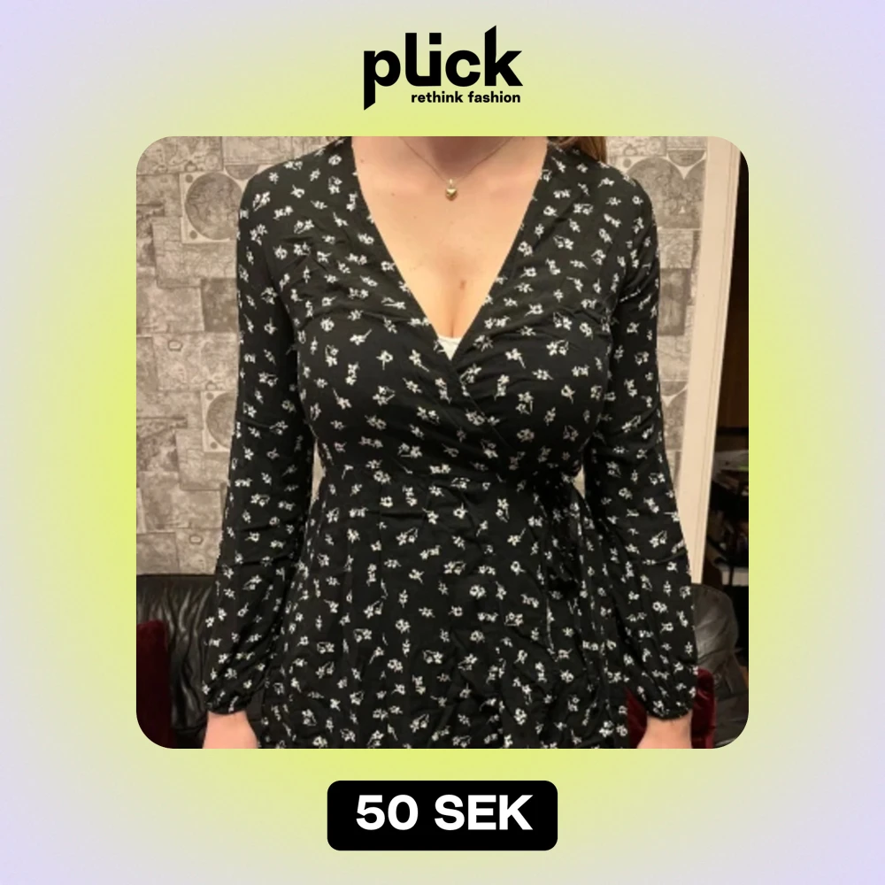Omlottklänning svart med vita blommor, fungerar även som tunika, storlek 34. Prisförslag. Frakt tillkommer