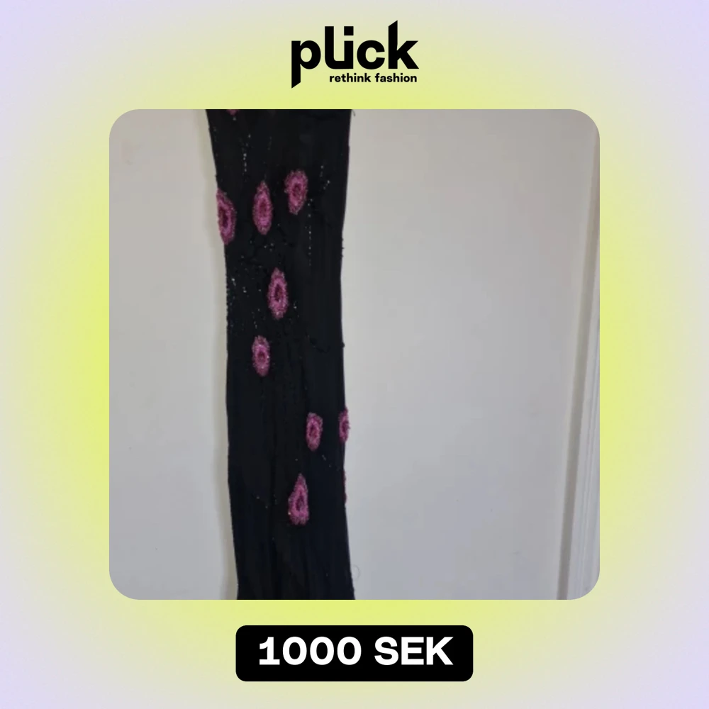 Otrolig slip dress Ceriserosa blommor och pärlbeströdda broderier, draperad urringning och tunna axelband. Dessutom asymmetrisk kjolskant med långa fransar av pärlbeströdda . Lite stretchig, passar storlek XS och S. Som referens har jag vanligtvis