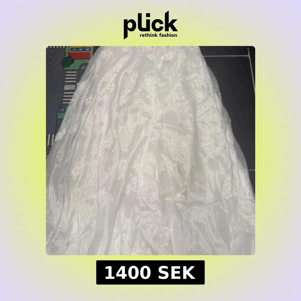 Säljer en vit bröllops långklänning med vackra spetsdetaljer och pärlor. Klänningen har en elegant, utsvängd form och är dekorerad med blommiga broderier och glittrande pärlor. Under kjol, handskar igår, klänningen är minskad . Den var str M . Minskad till xs. Går o göra den större på bröst p midjan . Har bara sytt in den. Köpt för 8000 efter rea.