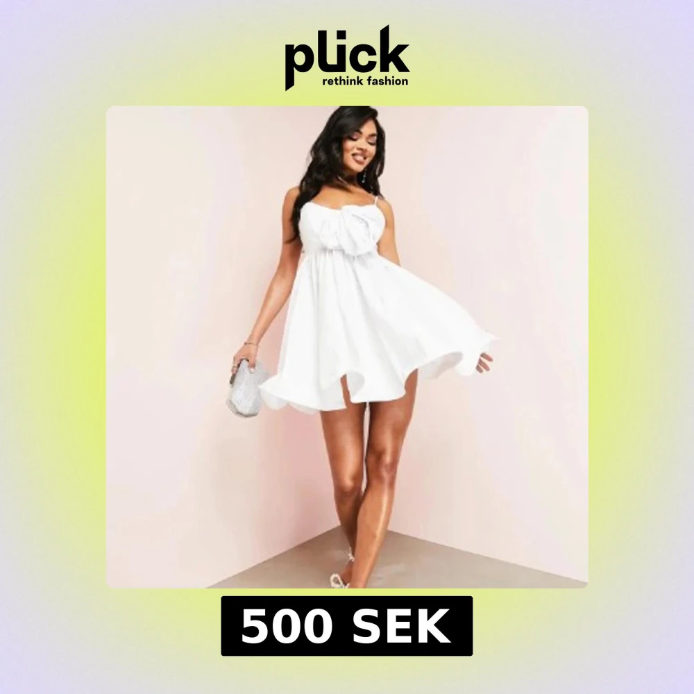 Supersöt vit kortklänning med stor rosett framtill och tunna axelband. Klänningen har en luftig och svängande passform, perfekt för varma dagar. Stilren och feminin look som passar till många tillfällen.