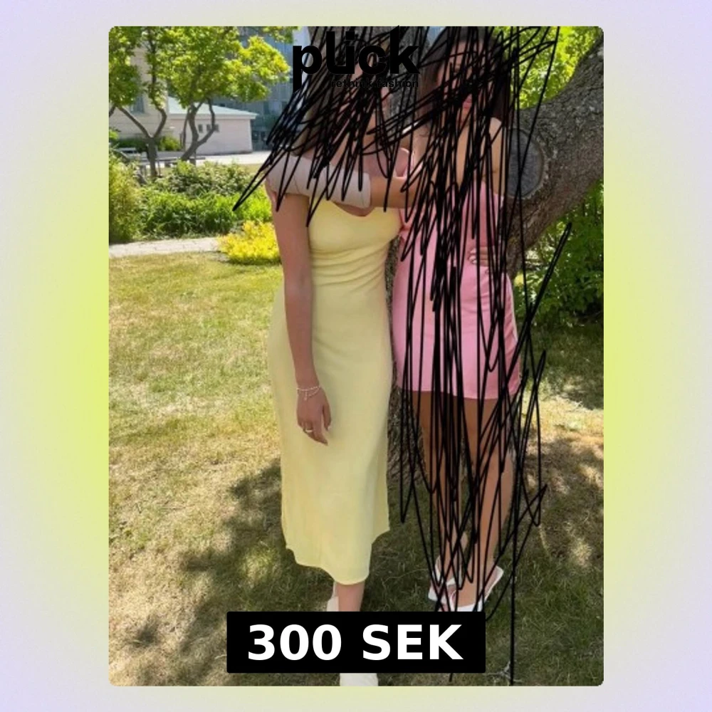 Säljer en gul klänning med smala band i storlek 34! den har en dragkedja på sidan