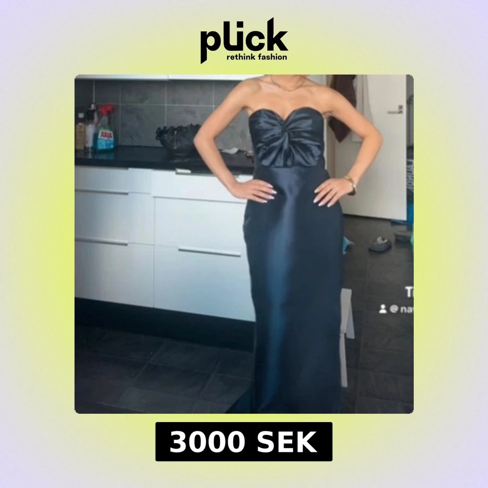 Supersnygg marinblå axelbandslös långklänning i glansigt satinliknande material. Köpt för 4000 säljare för 3000. Aldrig använt o prislappen sitter kvar. pris kan diskuteras