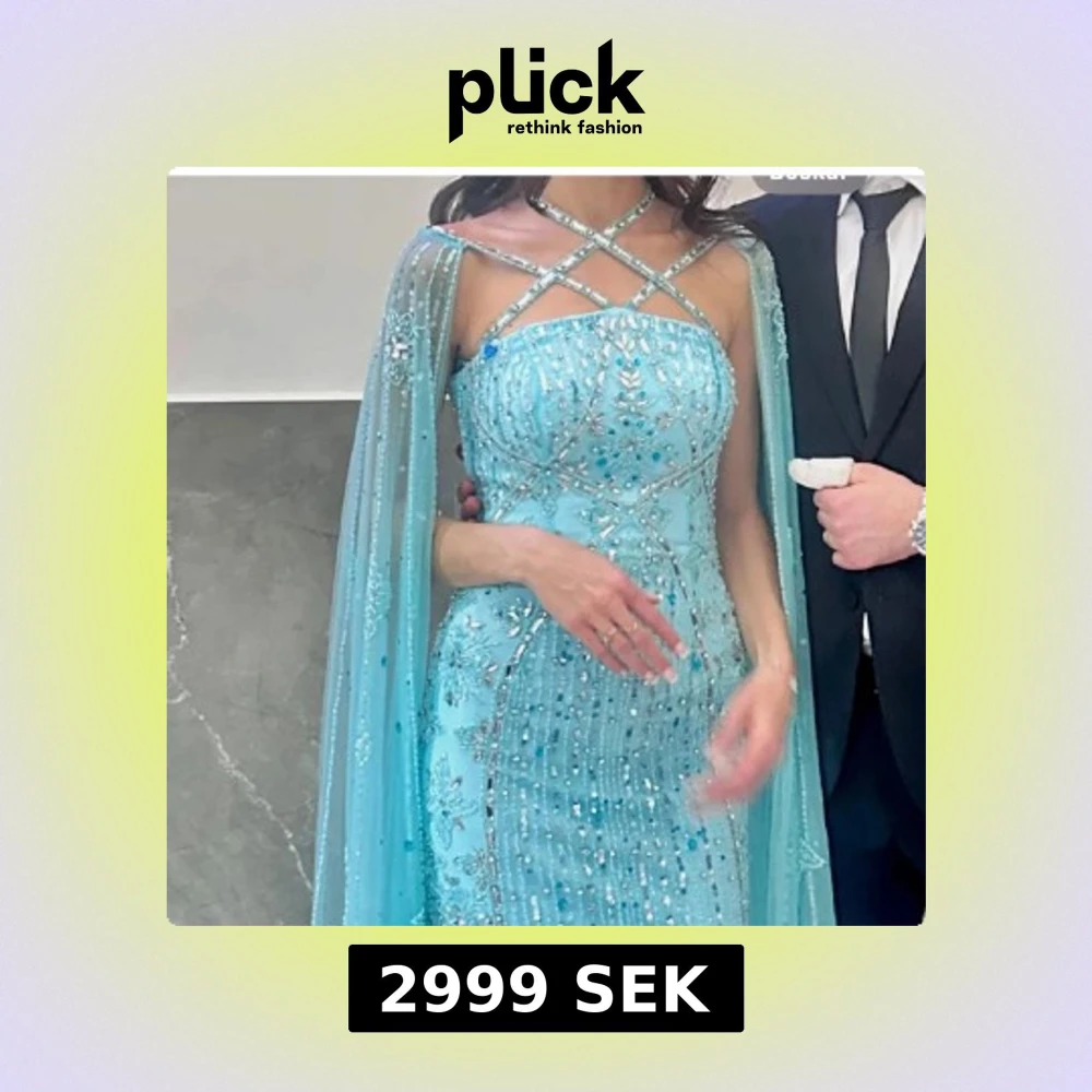 Turkos glittrig långklänning