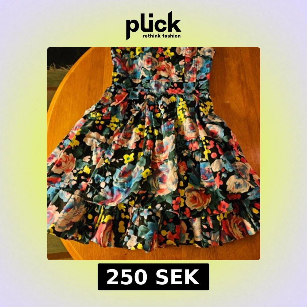 Säljer en färgglad blommig klänning från D&G. Den har en vacker volangdetalj och är perfekt för sommarens festligheter. Klänningen är ärmlös och har en kort längd som ger en lekfull känsla.