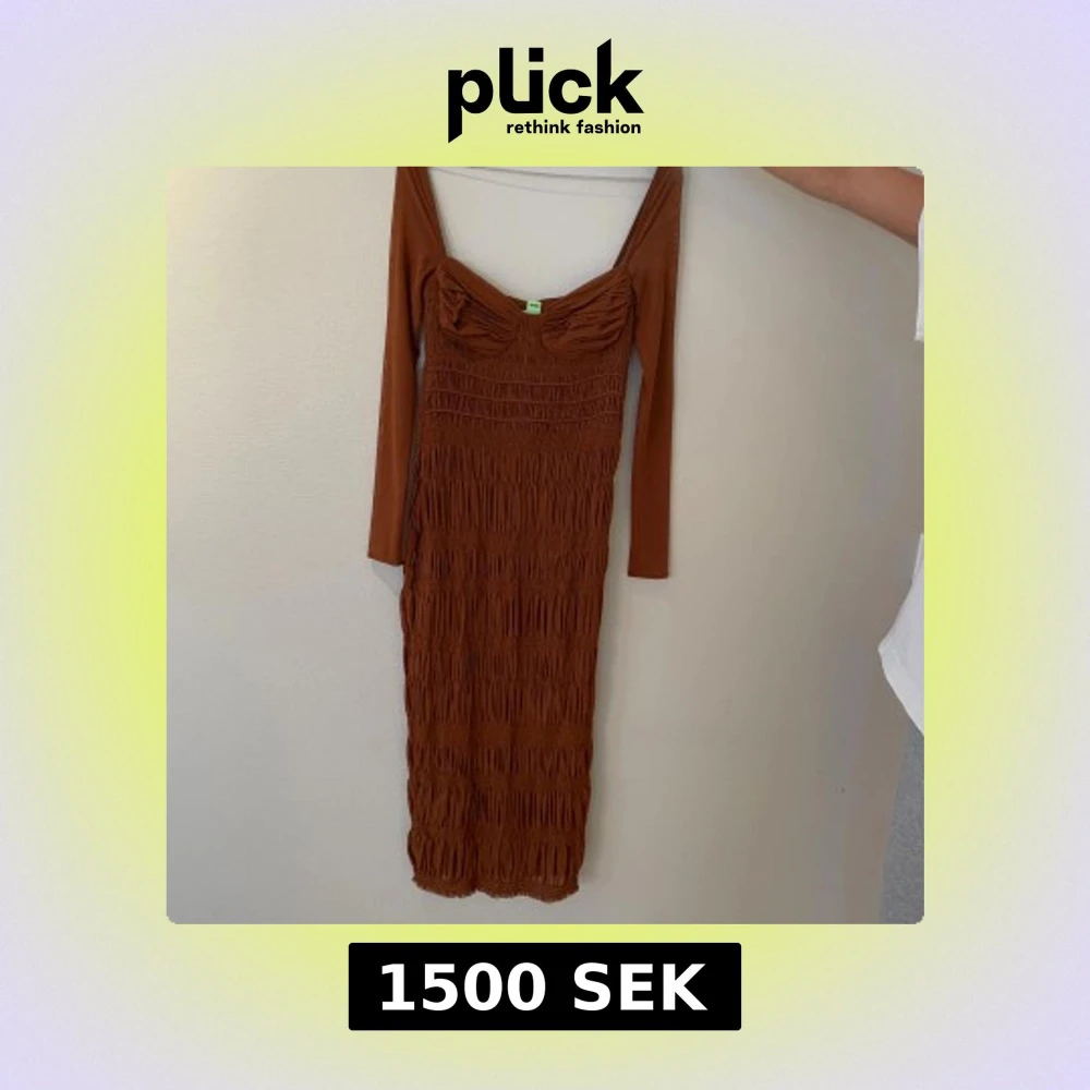 Säljer en snygg brun långklänning med smockad struktur och långärmade ärmar. Klänningen har en figurnära passform och ett rynkat bröstparti som ger en cool och trendig look. Perfekt för dig som gillar stilrena och unika detaljer.