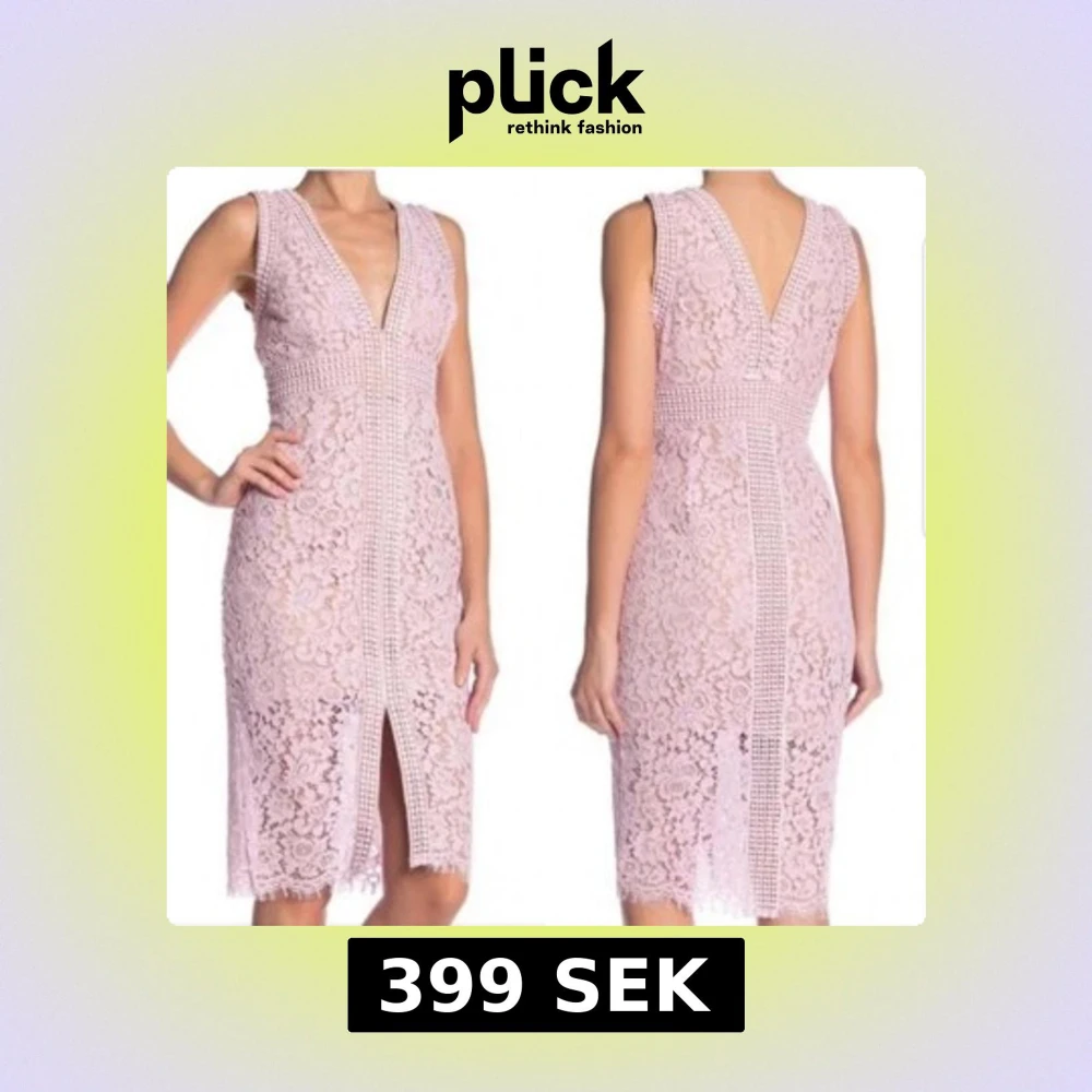 Supersnygg ljusrosa spetsklänning från Bardot med v-ringning, ärmlös design och slits framtill. Klänningen har blommigt spetsmönster och markerad midja, perfekt för dig som vill sticka ut med en romantisk look.