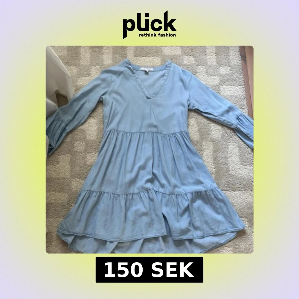 Säljer en ljusblå klänning jätte söt i typ jeans material 🥰