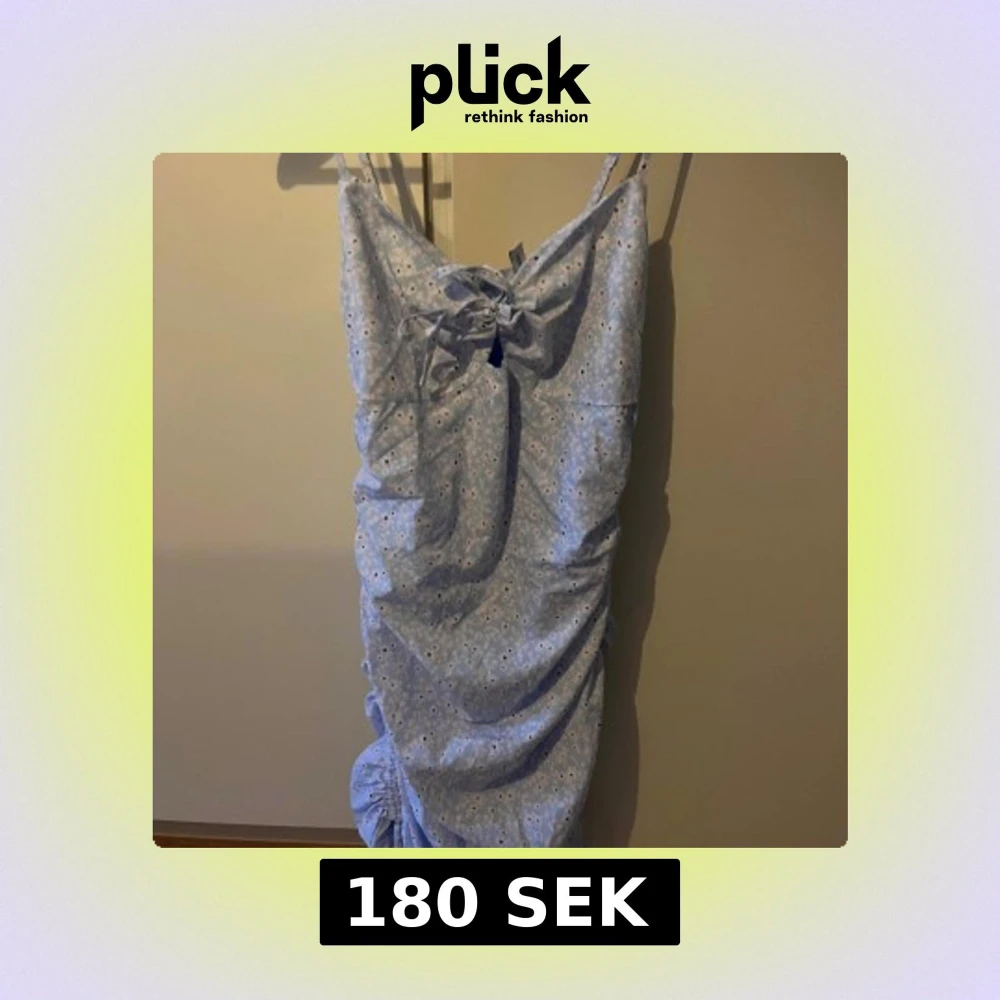 Säljer en söt ljusblå klänning från Nelly med blommigt mönster. Klänningen har smala axelband och en knytning framtill. Den är rynkad längs sidorna för en snygg passform. Perfekt för sommarens alla tillfällen! Knyten även nertill. Säljer pga att den aldrig kom till användning.