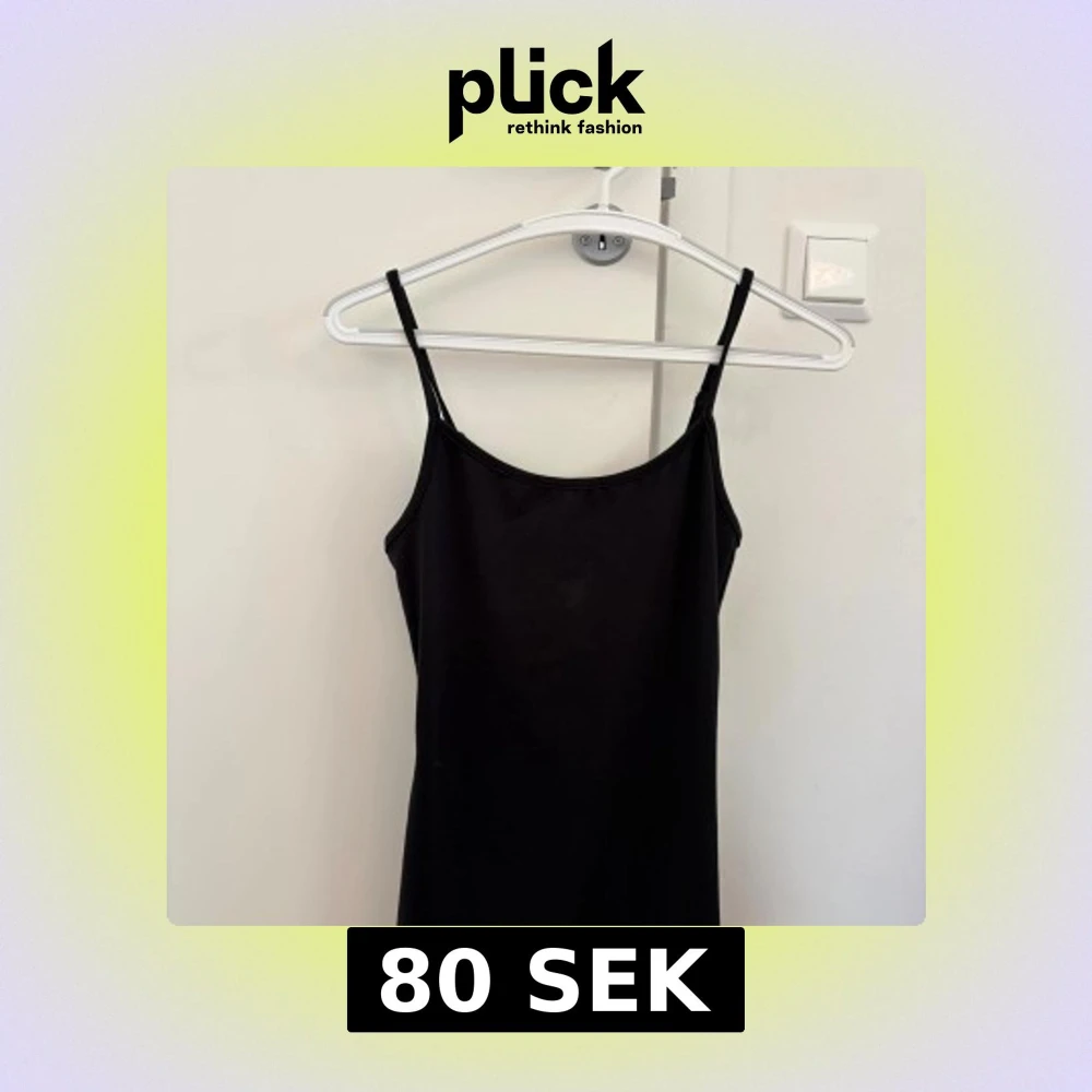 En stilren svart klänning med smala axelband och tajt passform. Perfekt för dig som gillar en clean look.