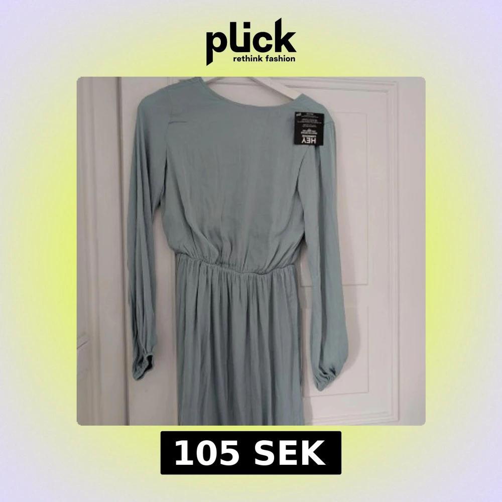 Säljer en elegant ljusblå/grön klänning från N.Y. Trend med långärmad design och v-ringad rygg. Klänningen har en elastisk midja för en bekväm passform. Perfekt för en stilren look. Helt ny med prislappen kvar