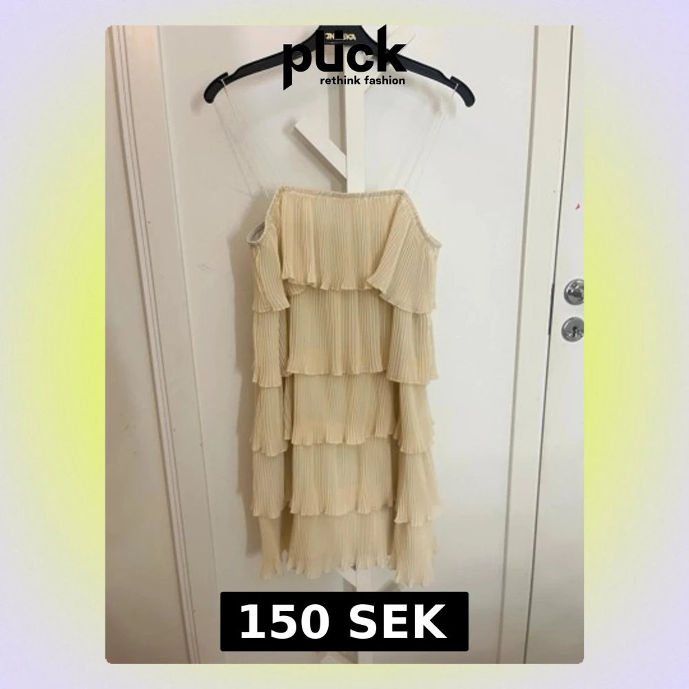 Superfin kortklänning i ljus gul med plisserade volanger i flera lager. Klänningen har tunna axelband vilket ger en luftig och trendig vibe. Perfekt för dig som vill sticka ut med en romantisk och chic stil. Pris går att diskutera.