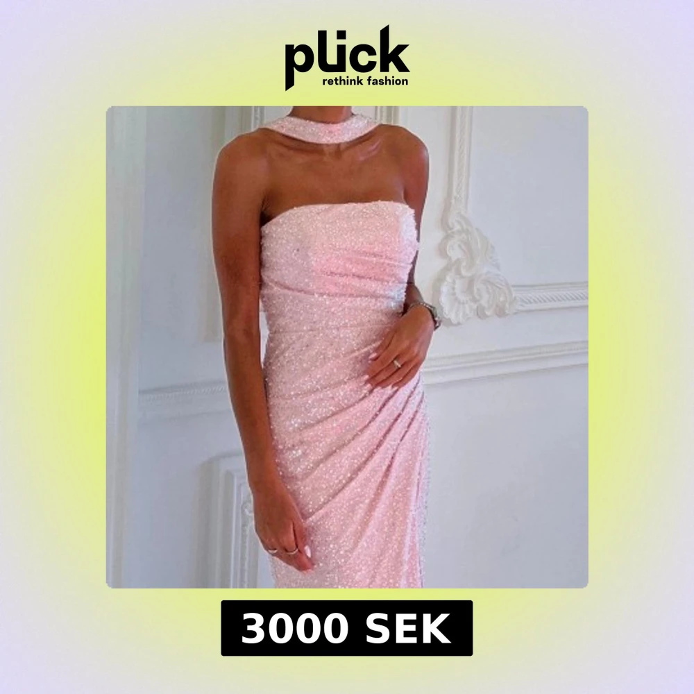 Ljusrosa glittrig långklänning med slits