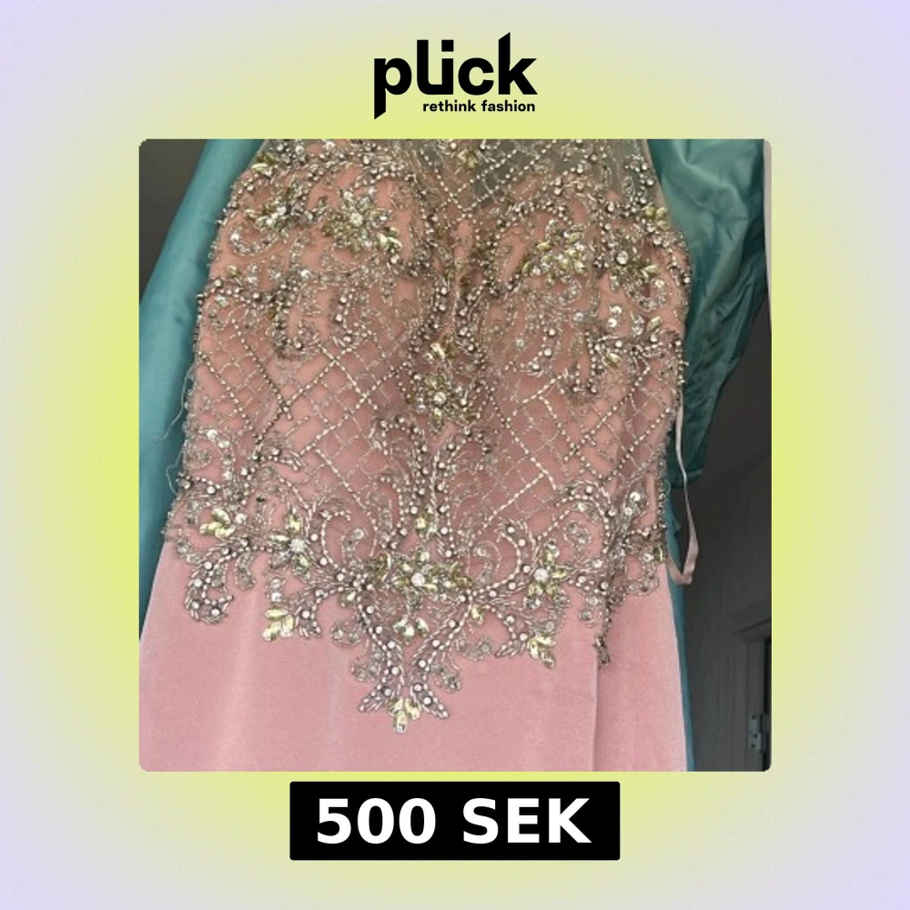 Elegant rosa klänning med fantastiska glittriga detaljer och broderier i silver. Perfekt för speciella tillfällen med sin lyxiga känsla och vackra design.