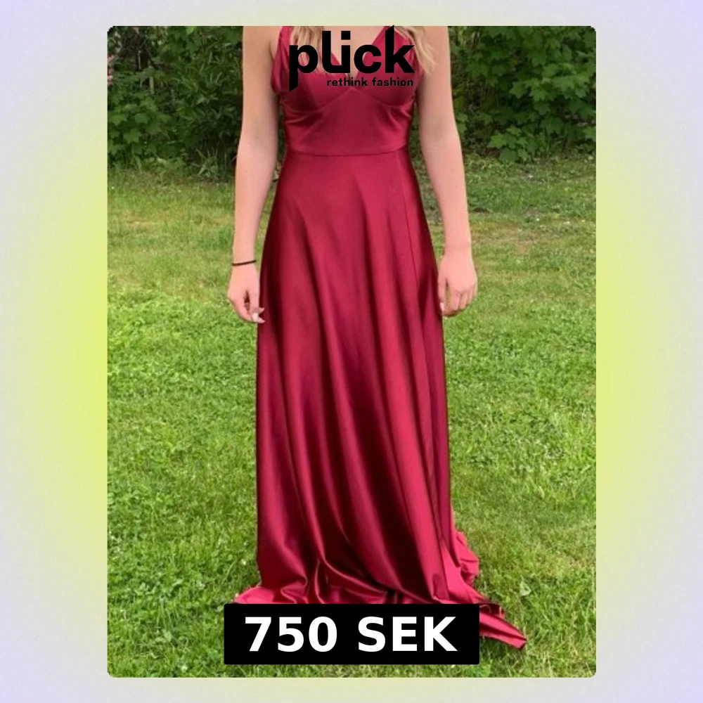 Elegant klänning i tyg med tungt fall. Slits fram. Dragkedja i ryggen. Klänningen aldrig använd då den kom för sent.