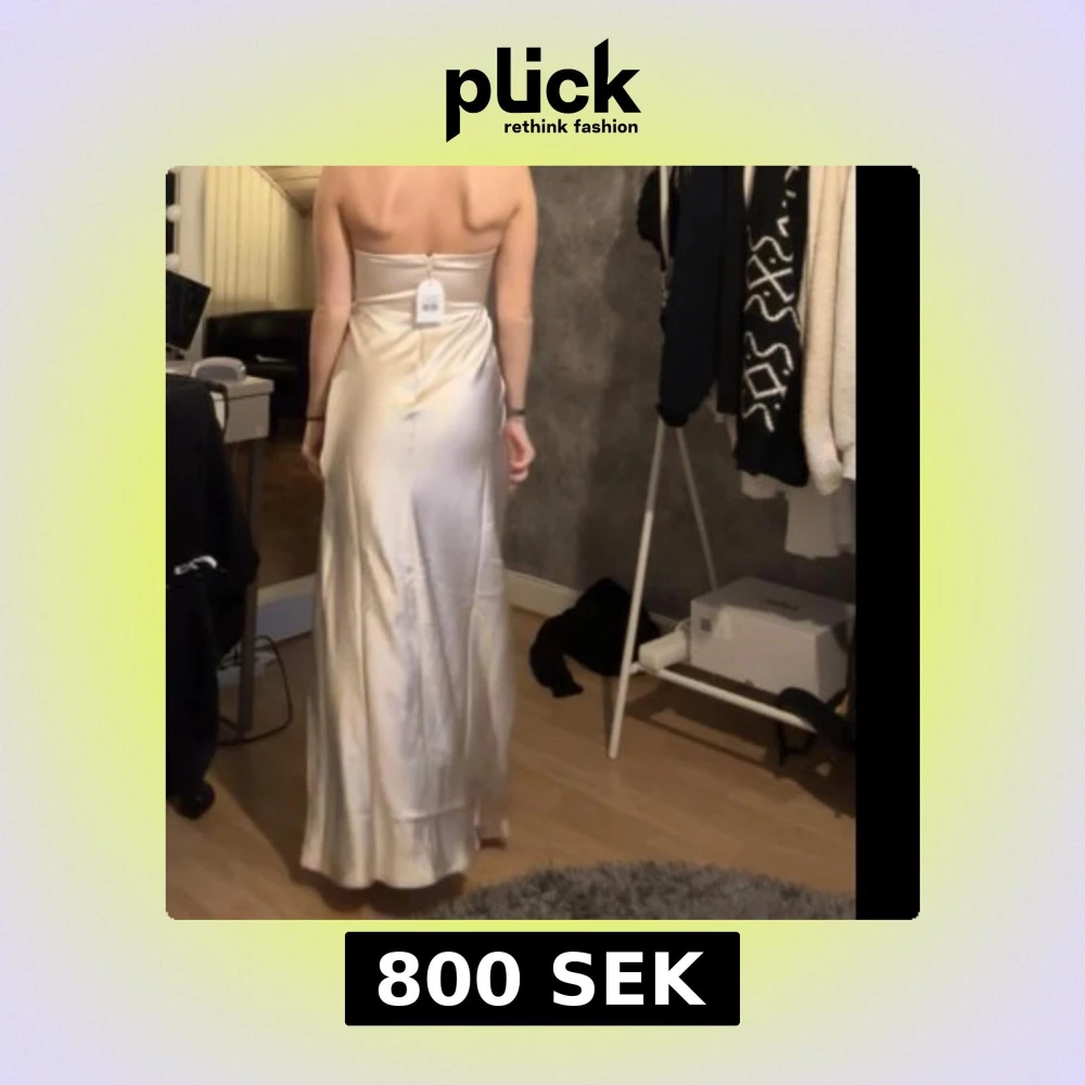 Balklänning, jag köpte två men bestämde mig för den andra helt oanvänd i nyskick. axelbandslös klänning i champagnefärg. Klänningen har en lång design med en slits.