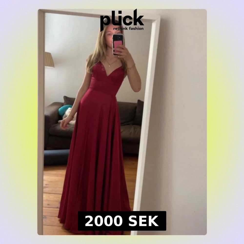 Säljer en elegant vinröd balklänning med v-ringad front och smala axelband. Klänningen har en snygg snörning i ryggen som ger en öppen och unik look. Materialet är mjukt och faller fint, perfekt för bal eller student. Nypris 3300. Från ivory fields med några fläckar längst ner