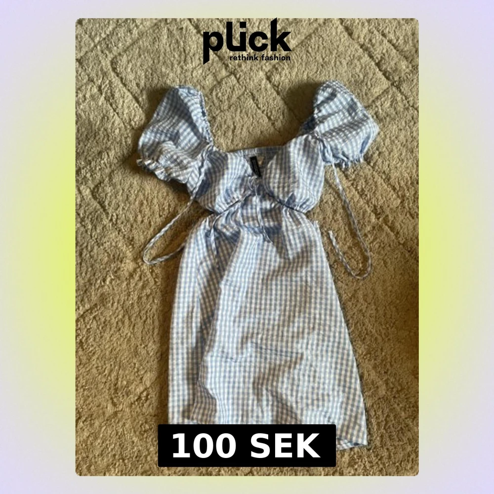 Supersöt blåvit rutig kortklänning från Divided i storlek 34. Klänningen har puffärmar, snörning framtill och en smockad rygg. Tillverkad i lätt bomullsmaterial, perfekt för varma dagar. Passar dig som gillar romantisk och trendig stil.