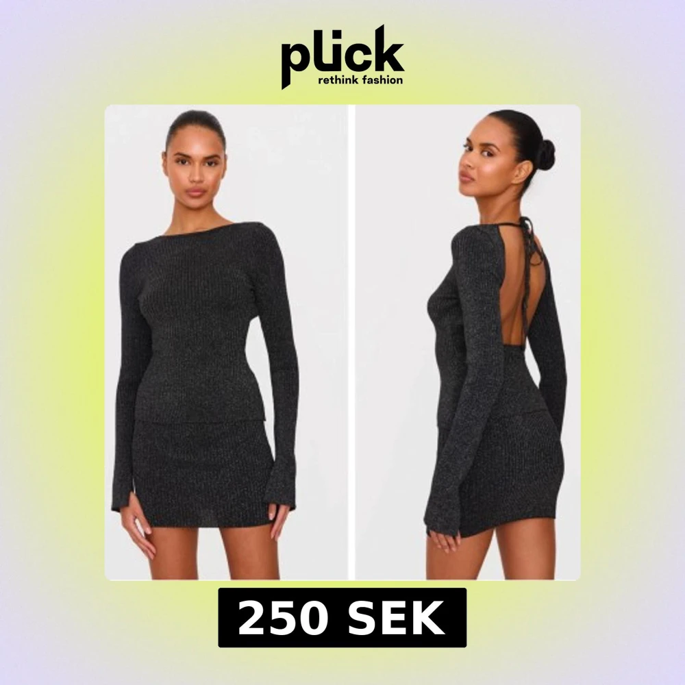 Trendig svart glittrig top och kjol med långärmad design och en snygg öppen rygg. Perfekt för utekväll!Den har en tight passform som framhäver figuren 🖤