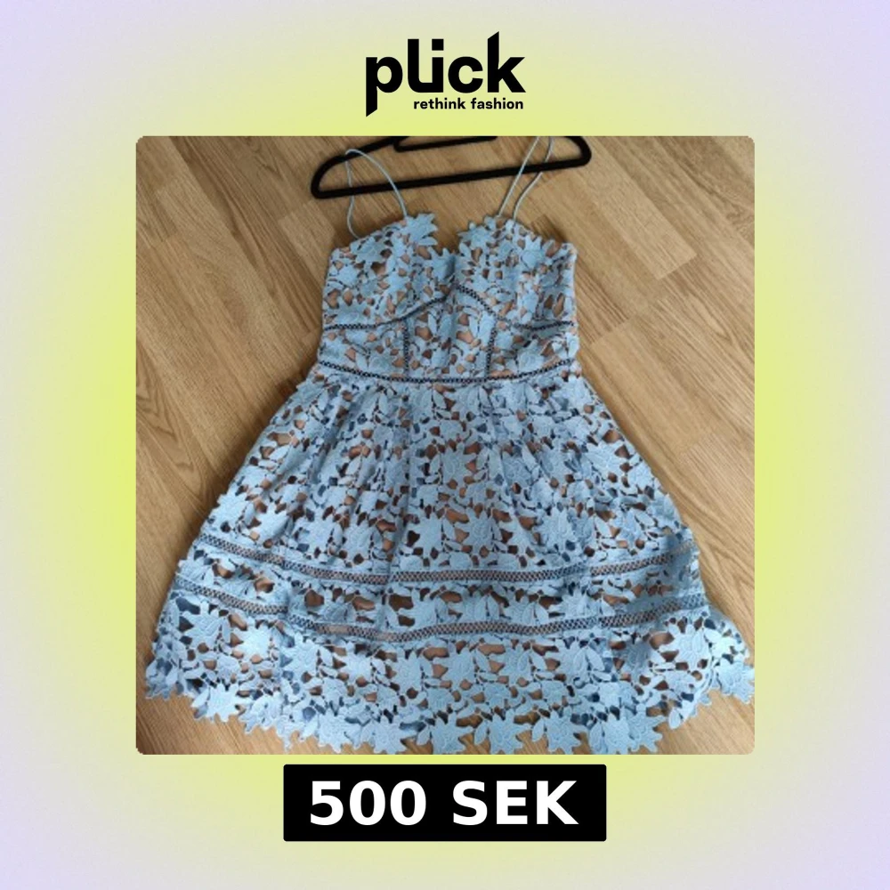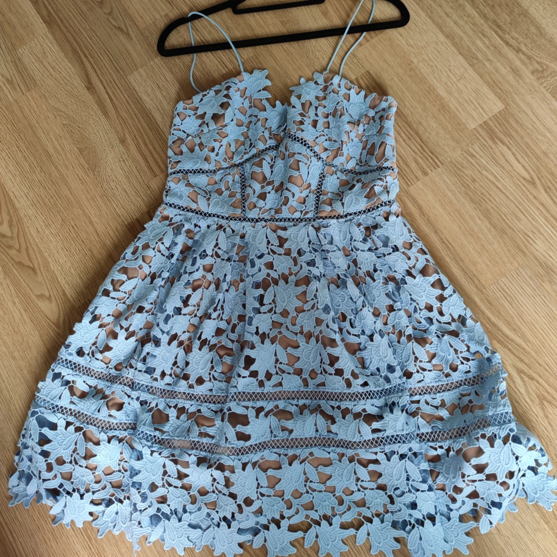 Ljusblå klänning med spetsdetaljer. Storlek.Uk 10 Us 6