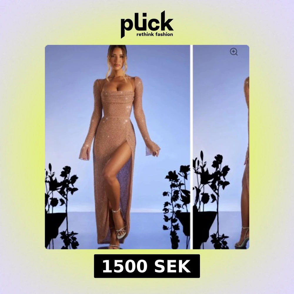 Glittrig långklänning med slits .