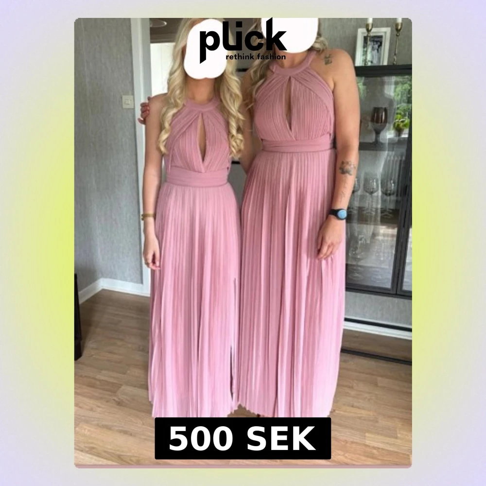 JAG HAR DEN I STORLEK 32 OCH 36!! Säljer en elegant långklänning i ljusrosa med plisserat tyg och hög hals. Klänningen har ärmlös design och en snygg detalj med öppning framtill. Perfekt för speciella tillfällen och har dragkedja i ryggen.