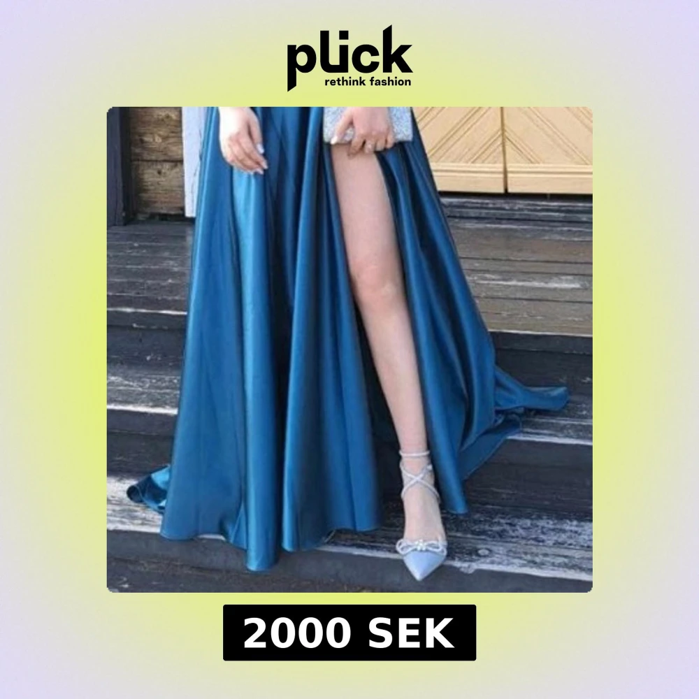 Använd bara i några timmar, så den är i nyskick. Lyxigt material och sitter jättefint. Klänningen har ett passande spetsutsmyckat livstycke med ömtåliga spaghettiband och en snörning bak för en justerbar passform. Den A-linjede satinkjolen flyter elegant med en golvlång fåll, vilket ger sofistikering. Kombinationen av strukturerade detaljer och en flödande siluett skapar en raffinerad och graciös look.
