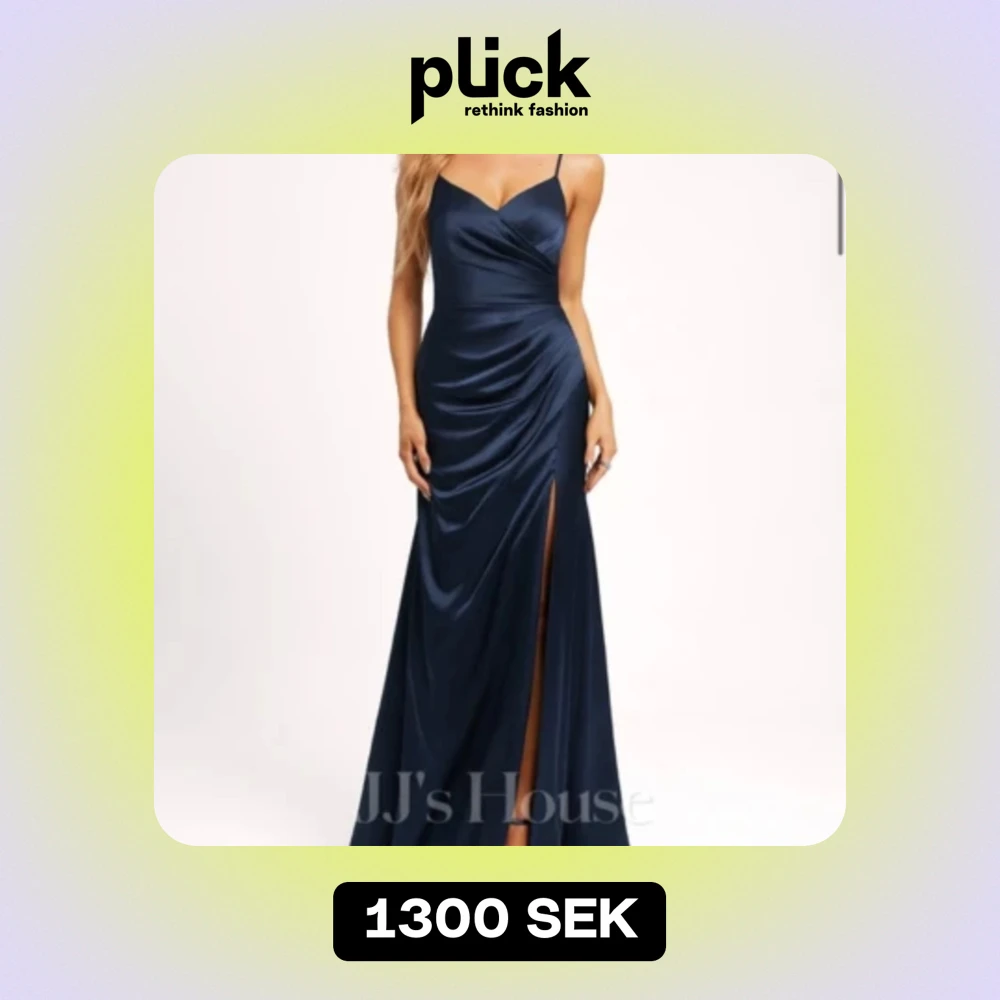 Säljer helt ny Marinblå satin balklänning, endast testad en gång. Säljer pga fel storlek. Nypris ink frakt ca 1550kr